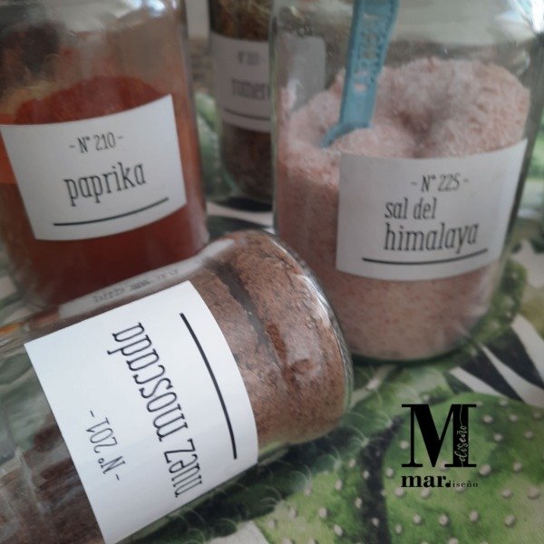 kit etiquetas de cocina listas para agregar a frascos de vidrio, plástico, metal. (que no sea una superficie porosa)